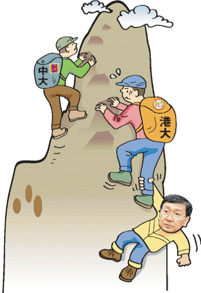大公网1月26日讯 据文汇报报道,百年老校香港大学一直是本地学术界的 龙头 ,其中法律学院也曾经备受推崇。不过,港大法律学院近年被指 重政治、轻学术 ,包括学院副教授戴耀廷涉嫌筹划违法 占中 ,原院长陈文敏就被指在任内包庇戴耀廷。根据大学教育资助委员会最快27日公布的 研究评审工作2014 报告显示,在陈文敏院长任内,港大法律学院的研究项目仅有46%达三星至四星的 卓越标准 ,远低于中文大学法律学院的64%,更有3%研究属劣等的 U级 ,表现不济,令人质疑有人 不务正业 ,过多花心思搞政治拖累了学术研究的质素。