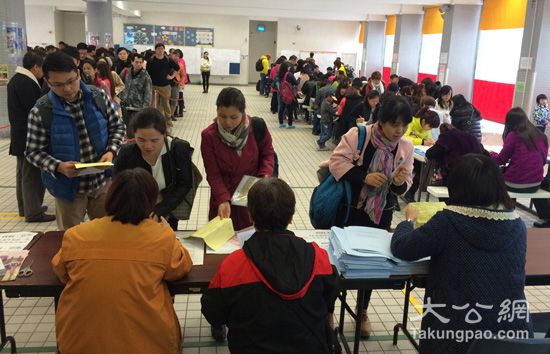 小一统一派位昨起一连两日接受申请,其中上水佛教正慧小学的 跨境专用校网 派位中心,大批家长昨天一大早已前来报名 大公报记者 刘家莉摄