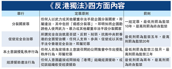 大公网4月9日讯(记者 陈达坚)倡议订立《反港独法》的大律师、民建联成员马恩国昨日表示,现时 港独 猖獗,如果有人提出有关言论并有暴力行为,应该作出拘捕。至于《反港独法》的内容,马恩国接受《环球时报》访问时指初稿列四罪,包括分裂国家罪和促使完全自治罪等(见附表)。