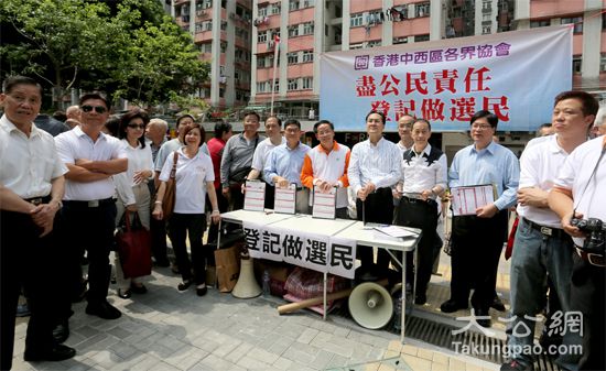 大公网4月26日讯 香港中西区各界协会响应官员落区,昨午于坚尼地城站石山街出口举办支持政改、落实普选的街站,同时呼吁市民 尽公民责任,登记做选民 。近五十名西区居民身穿白衣,胸前贴上 2017一定要得 的贴纸,高呼 一人一票选特首 、 政改一定得 、 我要有权选特首 的口号,热烈欢迎巡游落区的官员。有接受访问的年长市民表示,希望在有生之年亲自投票选出行政长官,呼吁反对派 高抬贵手 投票通过政改。