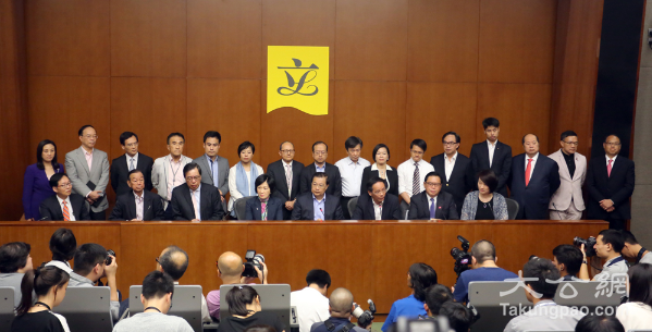图:建制派议员昨发表联合声明,对反对派否决方案感到愤怒/大公报记者黄洋港摄