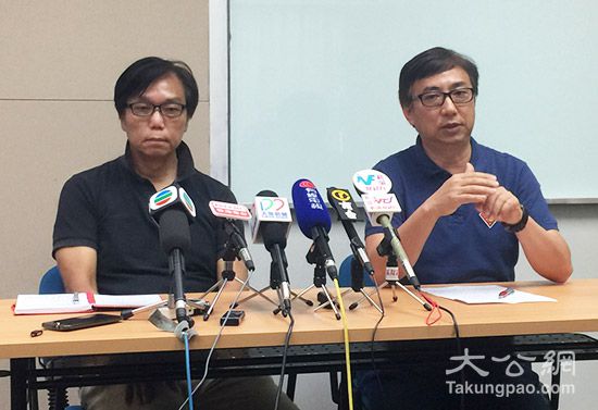 图:黄成智(左)昨日举行记者会,民主党成员狄志远(右)到场表示支持/大公报记者龚学鸣摄