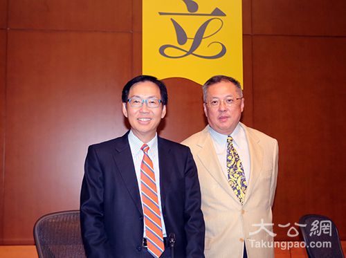 图:张宇人(右)和陈健波昨会见传媒,总结财委会今个立法年度的工作进度 大公报记者黄洋港摄