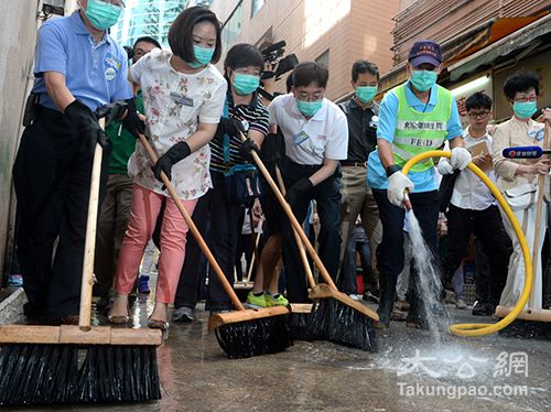 大公网8月3日讯(记者 高俊谦)为期两个月的 全城清洁运动 前日启动后,食物及卫生局局长高永文昨日率先 打头阵 ,率领十数名地区人士到湾仔一条后巷清洁街道,又主动向沿途店舖的职员问好。高永文表示,希望这次活动可以起到示范作用,引起市民关注街道的环境卫生,当局在九月亦会与区议会开会,讨论把全城清洁行动恒常化。