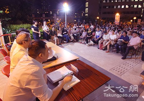 图:红磡邨昨晚举行居民大会,讨论食水含铅量超标问题大公报记者 黄洋港摄