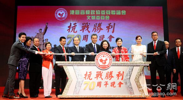 大公网9月1日讯 (记者张艺博)为纪念抗日战争胜利70周年,港区省级政协委员联谊会昨晚在香港会展中心隆重举行 抗战70周年文艺晚会 ,行政长官梁振英及夫人梁唐青仪、中联办副主任杨健和社工部部长杨茂担任主礼嘉宾,与该会主席陈清霞、会长谭锦球、文娱委员会主任邝美云等一起主持晚会启动仪式。晚会星光熠熠,邀得林子祥、草蜢、张明敏等着名歌星登台献艺,逾3000名观众入场,欣赏演出,缅怀历史。
