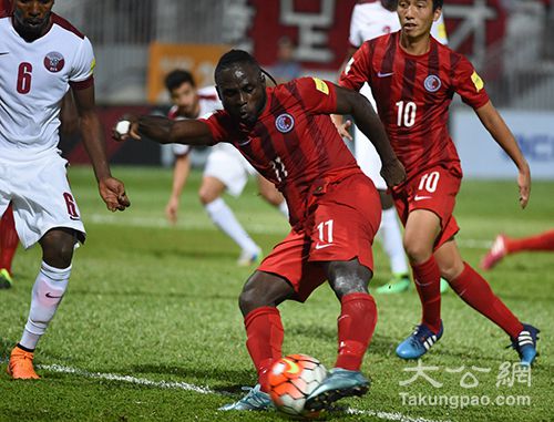 港足在世杯外首三仗录得2胜1和,昨以榜首身份出战卡塔尔,赛前奏中国国歌时仍有球迷发出嘘声,但忠实的港足支持者就高呼 We are Hong Kong 将嘘声掩盖,并且由开赛起不断唱歌、叫口号为港足打气,直至客军球员保迪夫建功令全场鸦雀无声,法拉拿、穆萨入球助卡塔尔领先到3:0,客军看似稳操胜券。