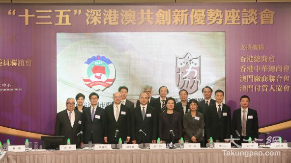 深圳市政协历届港澳委员联谊会和政协深圳市委员会昨日在港主办 十三五 深港澳共创新优势座谈会 ,逾两百位来自深港澳三地的官员、商界代表、专家及学者出席,共同就三地积极配合和参与国家的 十三五 规划,探讨发展机遇和提出良策。深圳市市长许勤、中联办副主任仇鸿、政协深圳市委员会主席戴北方、谭志源及澳门旅游局局长文绮华担任主礼嘉宾,中联办经济部部长孙湘一亦有出席。