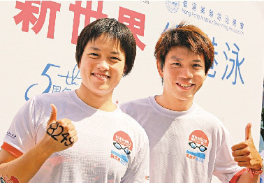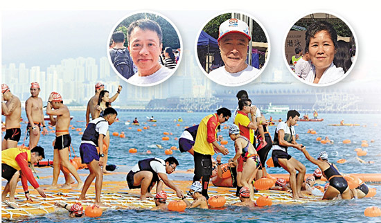 叶先生(见图左)连续第五届参赛,他说与以往数届比较,今年的水质和水温不错,天气亦十分舒适。他认为今年安排不错,因为去年泳手需等候一段时间才能出发,今年则没有 冷场 。