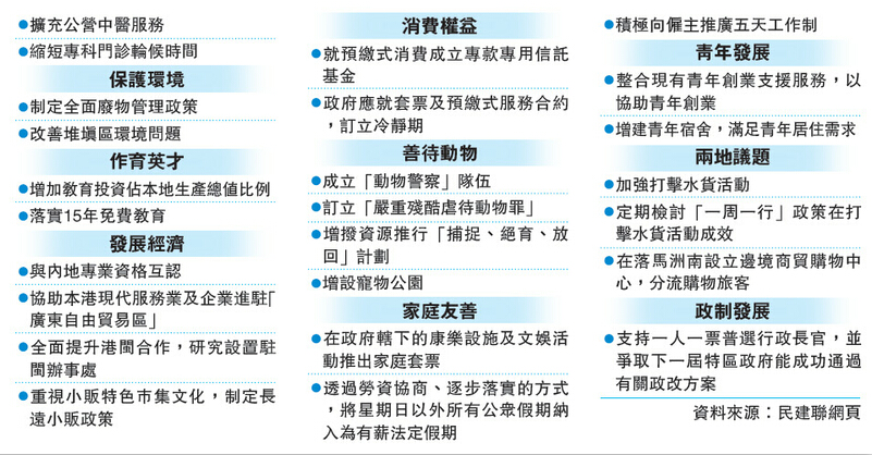 图:民建联派出171人参选,决心为议会注入 希望 、 和谐 、 专业 、 服务 、 决心 五股正能量/资料图片