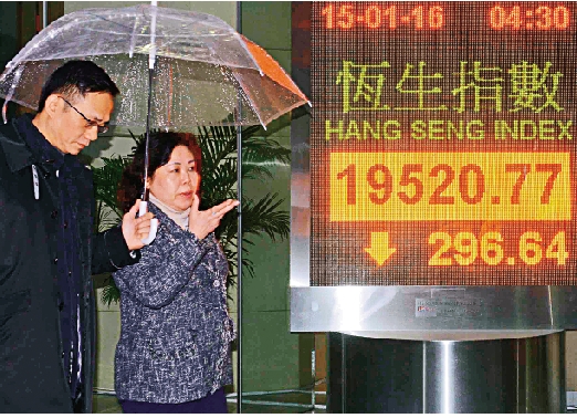 国际油价周四轻微反弹后,昨日已急不及待要回吐,中段曾跌超过5%;显示任何资产价格出现反弹,皆是沽货获利机会。美股隔晚反弹1%,对亚太区股市利好作用有限,反而跟随A股低走。内地A股3000点攻防战败阵,沪深两地股市大跌超过3%,连带港股开市后跌幅不断扩大,恒指最多跌317点,收市时跌296点,或1.5%,报19520点;年初以来,恒指已累跌2394点。
