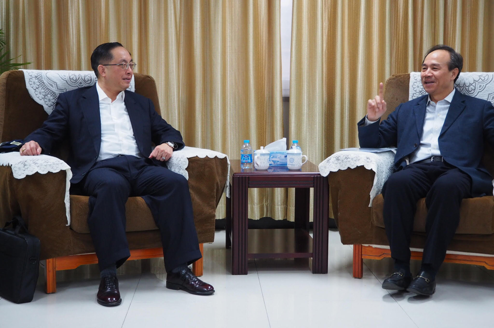 图:杨伟雄(左)昨日上午与周波(右)作礼节性会面