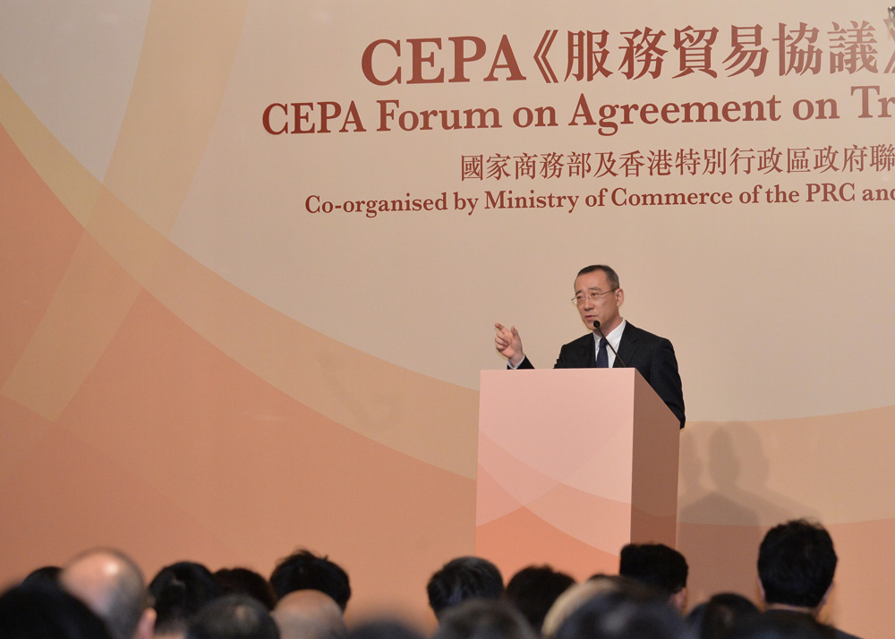 图:国家商务部台港澳司司长孙彤在CEPA服贸协议宣讲会上致辞
