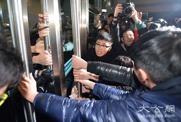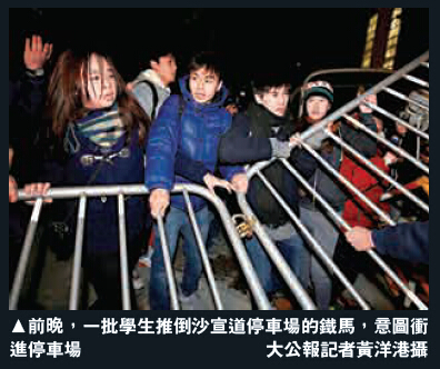 图:前晚部分学生企图冲入大楼,强行拉开大门大公报记者林良坚摄