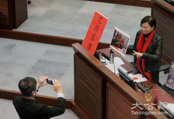 图:梁美芬议员表达剪布诉求/大公报记者麦润田摄