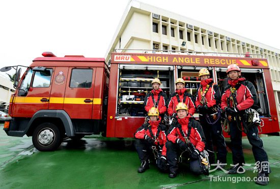 图:每逢有高难度的高空拯救任务,如缆车、机动游戏及悬崖事故等,消防处高空拯救队都会赶赴现场/大公报记者林良坚摄