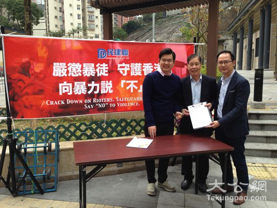 大年初一的旺角暴乱令全城市民愤怒!民建联连日发起撑警签名街站,呼吁全港市民向暴力说不!活动。昨日市民对街站依然反应踊跃,并批评暴力示威者声称是本土派,但其所作所为却正正是在破坏本土的环境。