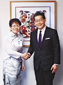 图:苏锦樑(右)与卑诗省国际贸易厅厅长屈洁冰会面/新闻处