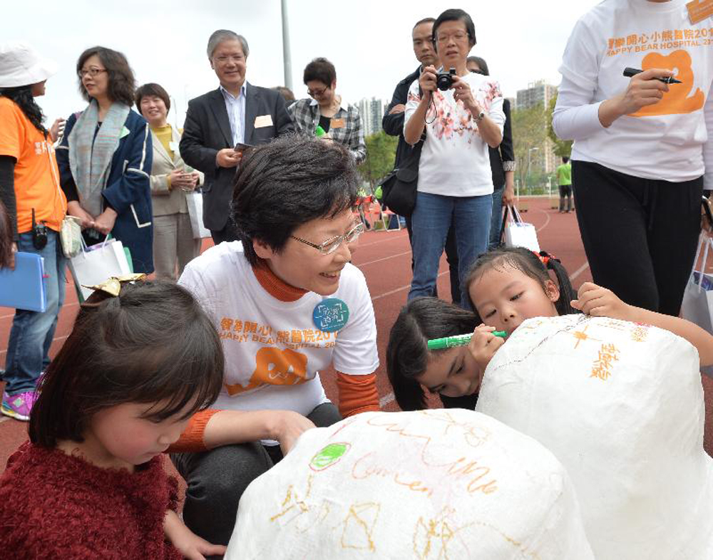 智乐儿童游乐协会昨日于沙田体育学院举办智乐开心小熊医院2016,在现场设置了不同医疗专科同城活动模拟医疗程序,让入场小朋友体验治疗性游戏,及病童平日的闲暇活动,为香港儿童医院推动全医院游戏服务的发展进程,打下一支强心针。出席活动的政务司司长林郑月娥,活动。与小朋友一同感受不一样的病房。