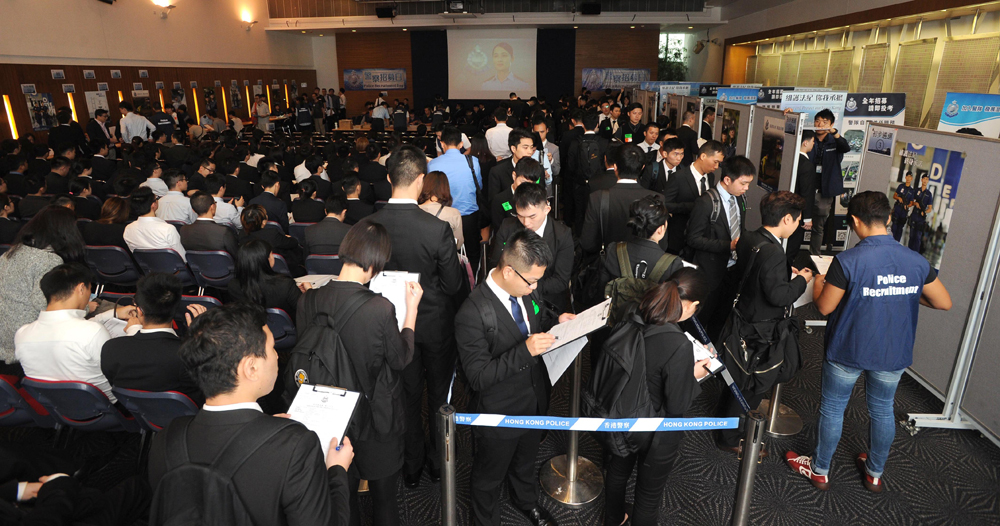 招募日即场为符合要求的投考人士进行初步遴选、小组面试等,应征者均穿着整齐套装到场面试。外国长大、28岁的陈先生称,曾任职机舱服务员,认为做警察能最直接贡献社会,所以转行投考见习督察。他坦言活动,投身警队另一原因是其薪高粮准,起薪点亦较外国吸引很多。