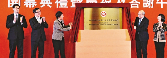 图:谭志源(右二)及王随莲(左三)在济南主持香港特别行政区政府驻上海经济贸易办事处辖下的山东联络处开幕典礼