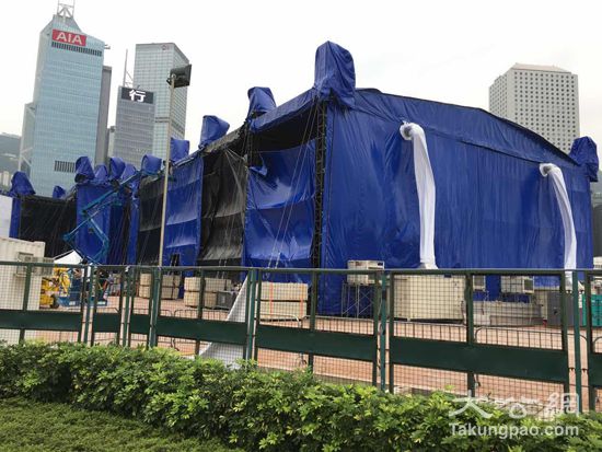 工人正在拆除演唱会的帐篷大公报记者 吴卓峰摄