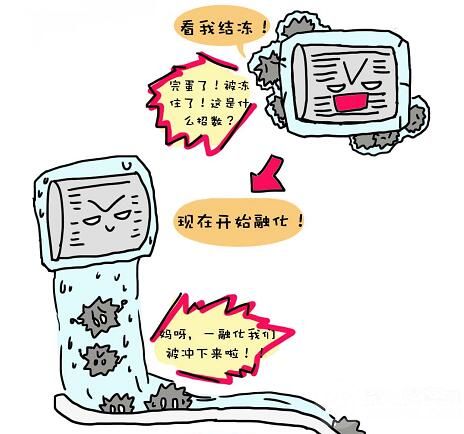 很多人都有过脚踩口香糖的经历,难以清除烦不胜烦,生活经验告诉我们,将鞋子放冰箱冷冻几分钟,口香糖就很容易剥落下来。会洗澡的自清洁空调也是这个原理,通过结霜强力剥离换热器上的陈年污垢,随后再用化霜的水把污垢冲得干干净净,不仅每年为我们节省大量拆机清洗费用,最重要的是能保证一家人的呼吸健康。