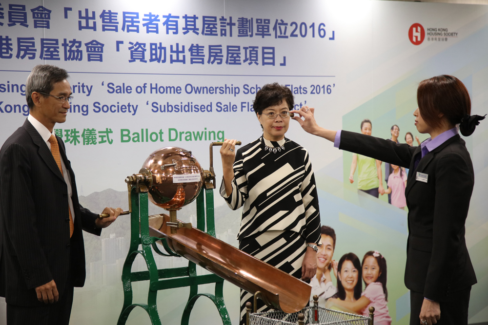 图:新一期居屋搅珠,绿表首45个号码和白表首三个号码可拣楼/大公报记者蔡文豪摄