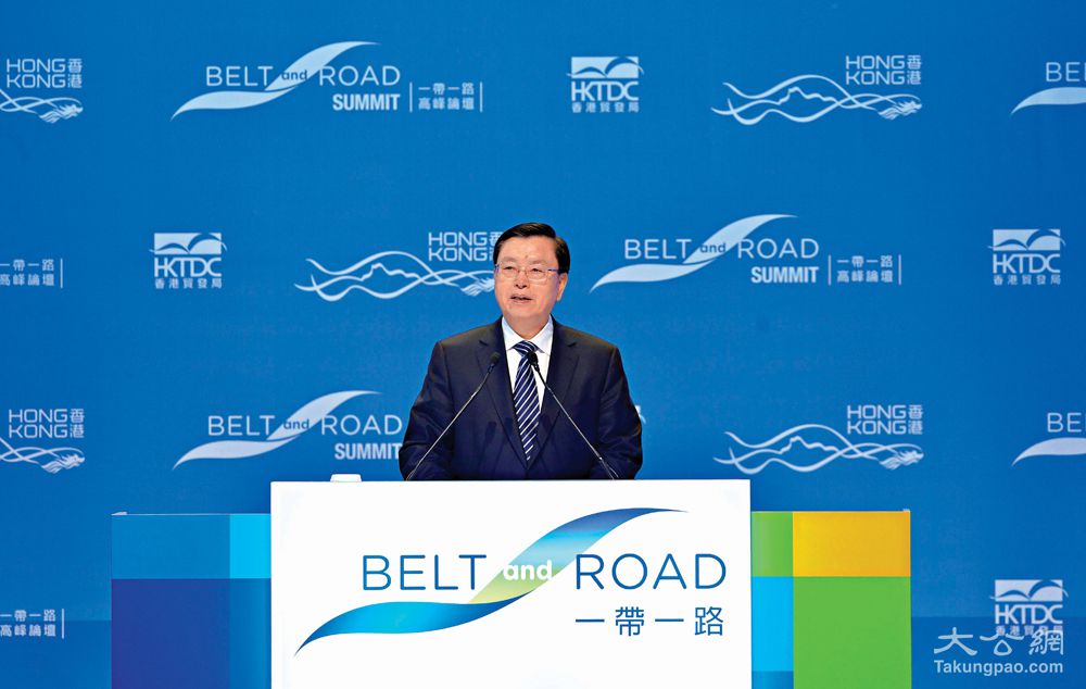 大公网5月19日讯(记者朱晋科)中共中央政治局常委、全国人大常委会委员长张德江昨日在一带一路高峰论坛发表主旨演讲,呼吁香港以更宽广的视野和胸怀把握一带一路的机遇,提升自身的优势。他强调,中央政府会从四方面支持香港,包括主动对接一带一路,打造综合服务平台;瞄准资金融通,推动人民币国际化和一带一路投融资平台建设;聚焦人文交流,促进一带一路沿线民心相通;深化与内地合作,共同开辟一带一路市场。