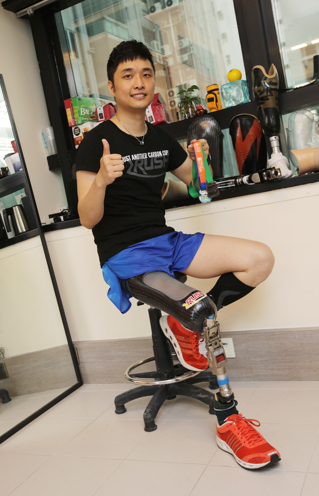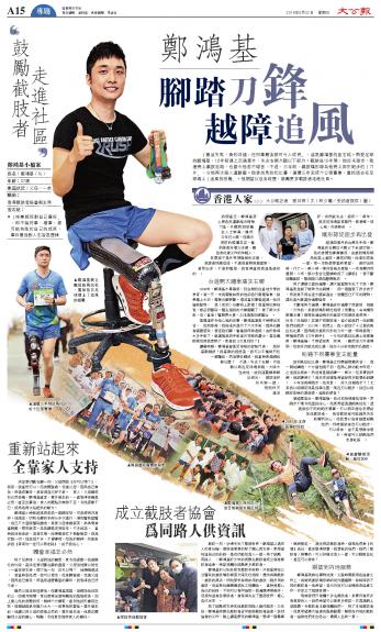 大公网5月22日讯(记者 张月琪)塞翁失马,焉知非福,任何事最后都可令人成长,这是郑鸿基的座右铭。热爱足球的郑鸿基,16年前遇上交通意外,失去右脚大腿以下部分。截肢后10年间,他从未跑步,就连装上义肢走路,也曾令他苦不堪言,不过,三年前,义肢矫形师为他装上用于跑步的刀片,令他再次跑入运动圈。他参加马拉松比赛,连续三年完成十公里赛事,重拾过去在足球场上追风的感觉。他期望以自身经歷,鼓励更多截肢者走进社区。