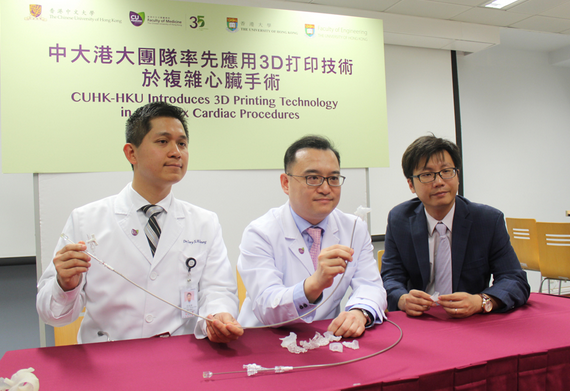 大公网5月25日讯(实习记者曾美玲)香港中文大学内科及药物治疗学系与香港大学机械工程系合作,去年将3D打印技术应用于四宗复杂心脏手术,透过超声波造影收集的数据,3D打印出高仿真的心脏硅胶模型。其中三宗左心耳封堵术使用该技术,术前打印出病人的3D左心耳活动,供主刀医生操练,施手术时一TAKE过(一举成功)将封堵器放置最佳位置,完全封堵左心耳,降低出现并发症的风险。医生预期未来可用此技术为病人度身订做可放置入身体的医疗仪器。