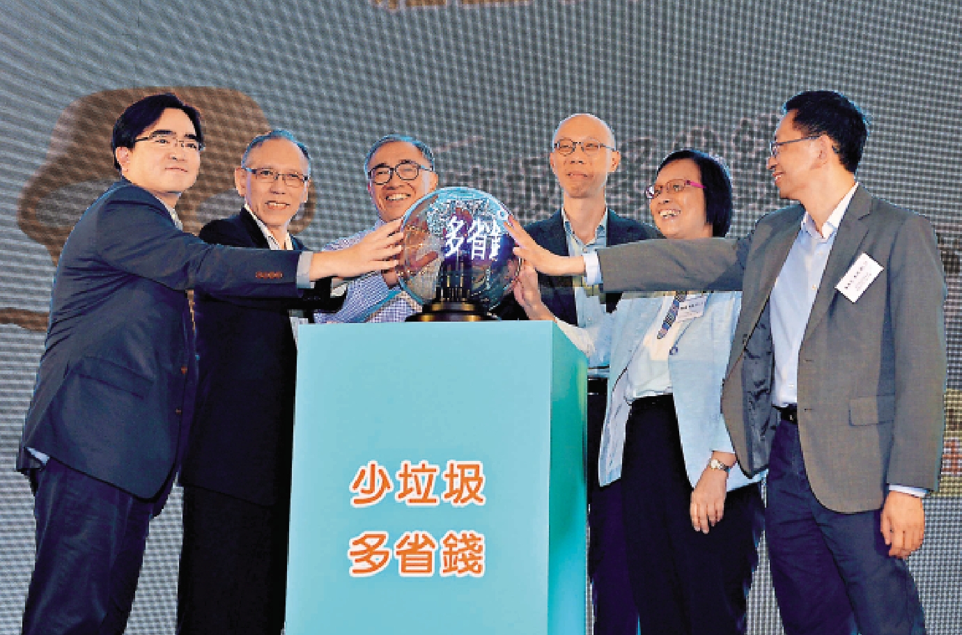 图:环境局局长黄锦星(右三)昨日主持都市固体废物收费─社区参与项目启动礼。 政府新闻处