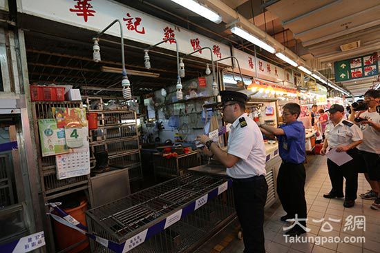 香港大学在上周六证实,上月16日在屯门仁爱街市的盛丰园鸡档检取的一个活禽粪便样本带有H7N9病毒,当局随即于当日傍晚六时通知业界停止活家禽供应。食物环境卫生署人员昨日分别前往仁爱街市,将该街市两个鸡档盛丰园、华记再次围封,并钉上渔农署所发出通知书;长沙湾临时家禽批发市场则有人员在场内泼洒消毒粉末和清洗地面。