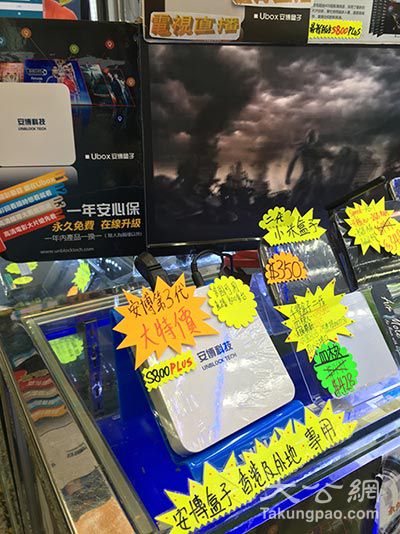 《大公报》记者近日走访深水埗鸭寮街发现,获喻为足球直播神器的电视盒子仍然盛行,街上十多间店铺公然摆卖各种牌子电视盒子,售价由500元至3000元不等。有店员透露,随着欧国杯即将开锣,过去两星期电视盒子销售数字急增,平均日售十多台。按此推算,鸭寮街单日卖出的电视盒子数量已逾百部。