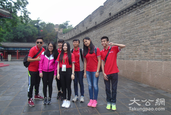 图:港生在长城留影纪念/大公报实习记者张帅摄