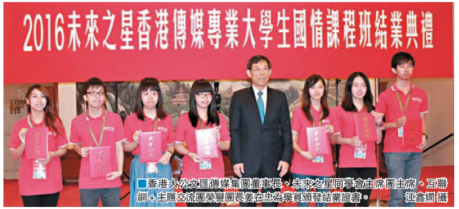 大公网6月20日讯(记者张宝峰)19日,2016年未来之星香港传媒专业大学生国情课程班互联网+主题交流团圆满完成八天的学习参访,顺利结业。在近日于人民大会堂举行的结业典礼上,全国人大常委会副委员长向巴平措为港生们颁发了结业证书,他希望香港青年能树立与祖国同发展共繁荣的主人翁意识,成长为具有民族自豪感、国家归属感和社会责任感的一代新人。结业式上,港生们纷纷表示,通过此次的学习参观,极大地增进了对祖国内地各方面发展和传统文化的认识,提升了国家归属感和民族自豪感。