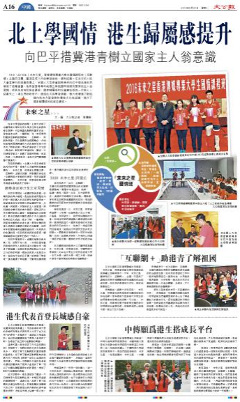 袁军说,在港生学习参访期间,中国传媒大学围绕互联网+的主题,组织开展研讨讲座,同学们积极参与。通过这些活动,港生们亲身体会和感知到了内地在社会经济、文化传媒领域的发展,对祖国的发展有了更直观、更深刻的认识与了解。