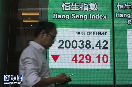 恒生指数16日下跌429.10点,收报20038.42点/新华社