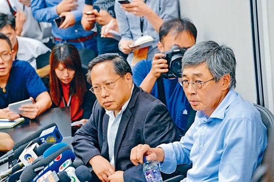 铜锣湾书店店长林荣基(右)日前召开记者会,讲述被内地拘留详情。 资料图