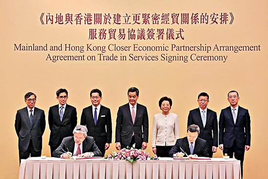 2003年,在香港回归六周年之际,中央政府响应香港提议,签署了CEPA,此举极大地提升了香港商界信心,香港经济开始明显复苏。2015年,在CEPA框架下签署的《服务贸易协议》让内地与香港基本实现服务贸易自由化,令两地的开放服务贸易达到新的里程碑。是次的补充协议也被称为最强CEPA。