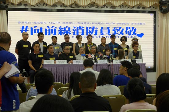九家协助制作电子传媒机构,由昨晚起一连三日,在晚上七时同步播放相关向消防员致敬短片。九家媒体包括无线电视、TVB Network Vision、有线电视、凤凰卫视、nowTV、ViuTV、香港电台、商业电台以及新城电台。
