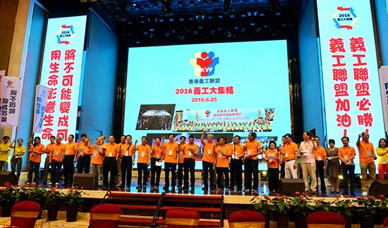 大公网6月28日讯 为加强属下义工团的联谊交流,香港义工联盟日前在东莞举办2016义工大集结活动,共有逾500名义工参加,出席的主礼嘉宾包括东莞市委书记吕业升、副书记姚康,中联办副主任林武、秘书长许东,香港广东社团总会常务副主席梁亮胜,广东社团总会荣誉主席王国强、香港海南社团总会会长张泰超,香港福建社团永远名誉主席洪祖航,香港广西社团总会永远会长邓清河,香港福建社团联会副主席柯达权,与香港义工联盟主席谭锦球、常务副主席蔡加赞、林龙安、马浩文,秘书长陈仲尼等共同出席。