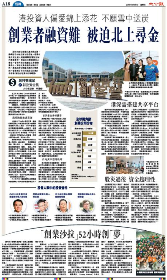 2014年,谭伟豪加入本土创投融资平台香港天使投资脉络,当时协会的天使投资人不足百位,现在的会员规模增长十倍。香港投资人积极展开与内地同行的合作。谭伟豪去年创立的深港联投,旨在实现两地创投项目的资源共享。至今年初,具有清华大学背景的英诺天使基金正式落地香港,聚焦在香港青年创新创业项目。