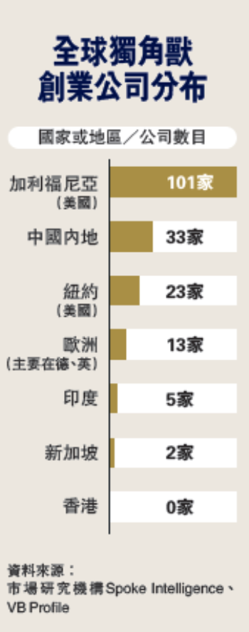 在上月末公布的《2016年世界竞争力年报》中,香港时隔四年后再夺榜首。报告对香港的评价为,致力于提供良好的营商环境,通过简单、低税率的税制鼓励创新。但难以回避的尴尬是,鼓励创新的香港时至今日还未出现过一家独角兽(估值10亿美元以上的初创企业)。与之相比,中国内地目前拥有33家独角兽,与香港形成直接竞争关系的新加坡亦有2家。