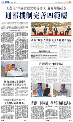大公网7月6日讯(记者龚学鸣、马静、计梦慧)国务委员、公安部部长郭声琨昨在北京会见了香港特区政府律政司司长袁国强及保安局局长黎栋国等一行,磋商内地与香港通报机制。郭声琨强调,中央政府高度重视特首梁振英关于检讨现行通报机制的要求,希望两地进一步完善通报机制,推动建立两地更加紧密的执法合作关系。公安部称,是次磋商是历年来规格最高的一次。双方同意未来重点就通报时限、内容、范围、渠道等四个方面进行修改和完善。