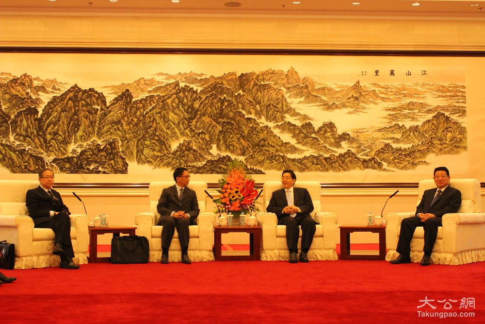 图:公安部部长郭声琨(右二)会见袁国强及黎栋国等一行