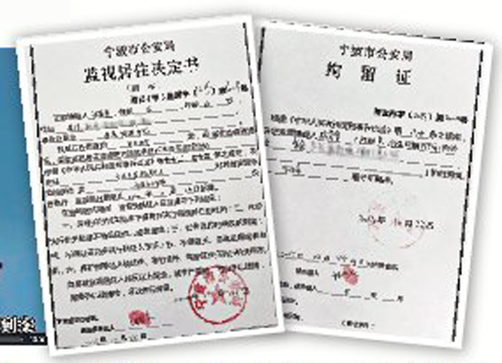 林荣基曾签署的拘留证及监视居住决定书\大公网视频截图