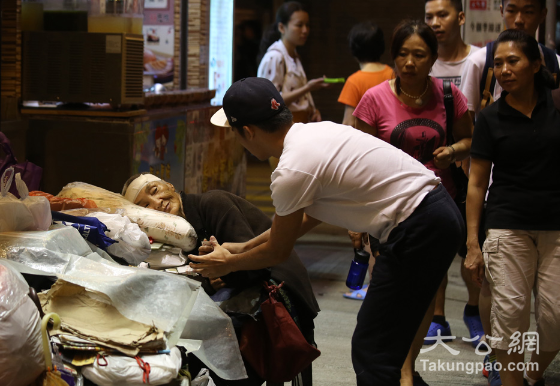 记者适遇家住黄大仙的谭先生,昨晚放下500元,购买一份《大公报》,婆婆面露笑容答谢。谭先生称,佩服睡婆婆自食其力,体现香港人的精神,他只是向婆婆表达一份敬意。