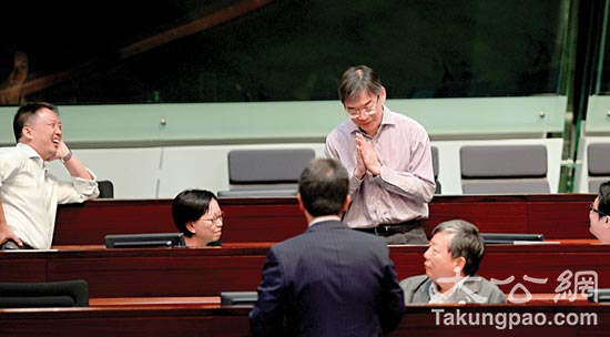 图:面对拉布,建制派及泛民议员齐批梁家骝拖延会议/大公报记者林良坚摄
