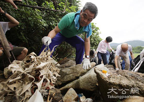 大公网7月11日讯(记者孙凌奕)本港南部多地海滩近日出现成堆成堆漂来的海上垃圾,行政长官梁振英昨日率领逾60名政府人员,包括多名政策局局长,前往大屿山水口的红树林,为海岸清洁行动出一分力,收集清理的垃圾达1350公斤。梁振英表示,数星期以来,由于天气原因,很多内地垃圾冲到香港,特区政府将与广东方面沟通,跟进处理。